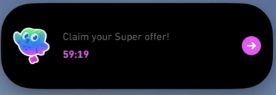 近日,一名Reddit用户称其苹果手机顶部的灵动岛区域,突然弹出了一条带有倒计时的“Super Offer”广告,点开竟是多邻国的付费订阅推销,随后,多位苹果手机用户确认其设备锁屏和灵动岛区域也出现相同广告。