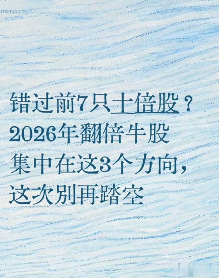 A股的机会永远藏在时代趋势里,过去的十倍股已经证明,跟着产业变革走,才能抓住大机会。2026年,AI深度落地、高端国产替代、低碳转型这三个方向,既有真实的技术突破和业绩支撑,又有广阔的市场空间,是最值得关注的核心赛道。