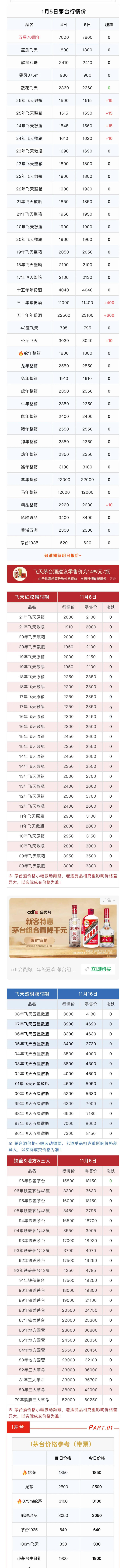 股票配资网官网1月5日茅台市场行情价。